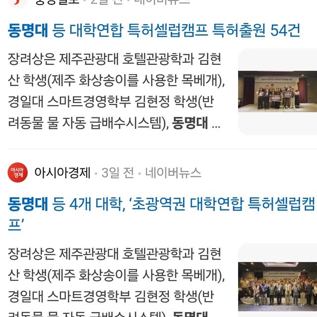 📣 제주도에서 열린 대학연합 특허셀럽캠프에서 3학년 김보민 학생이 특허출원왕상을 4학년 하석재 학생이 장려상을 받았다는 소식입니다.👍 축하합니
