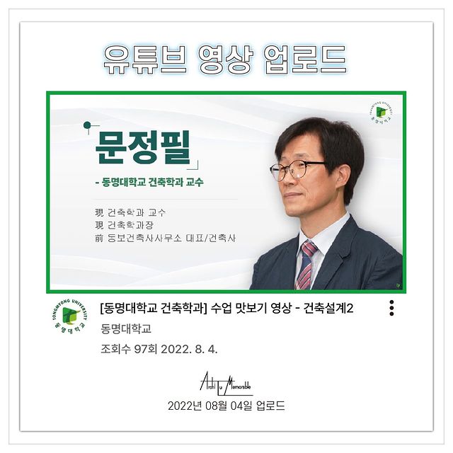 두번째로는 문정필 교수님의 건축설계2 과목의 맛보기 영상이다요✨