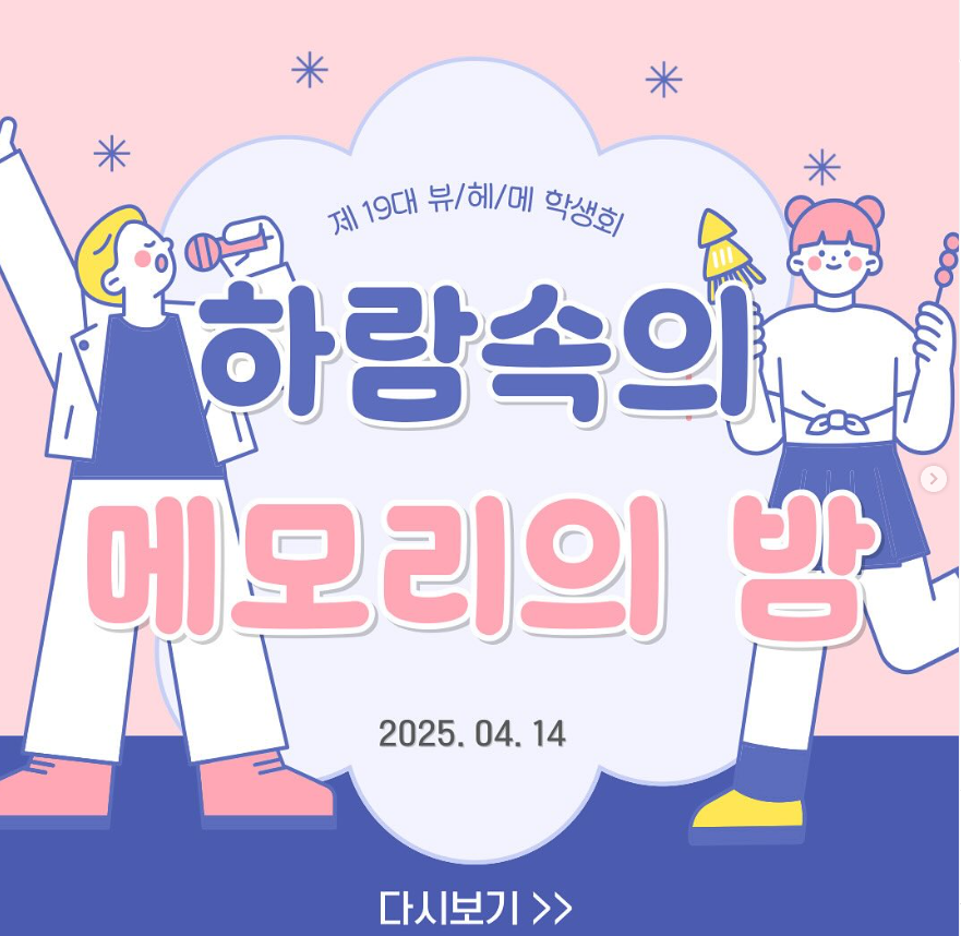 안녕하십니까. 제 19대 뷰/헤/메 학생회 입니다.