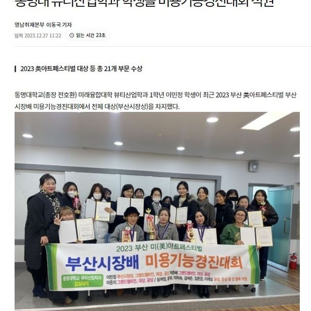 동명대학교 뷰티산업학과 입상내용이 대한경제 신문에 기사가 났어요~~~~