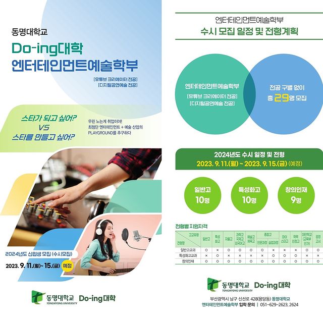 엔터테인먼트예술학부 유튜브크리에이터전공은?