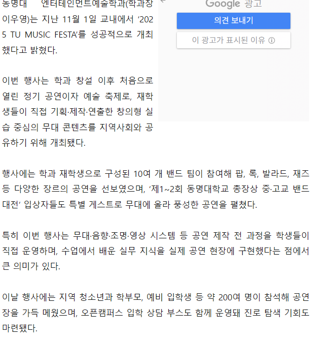 동명대 엔터테인먼트예술학과, 세계를 잇는 K-POP 창의 예술 페스티벌 ‘2025 TU MUSIC FESTA’ 성료