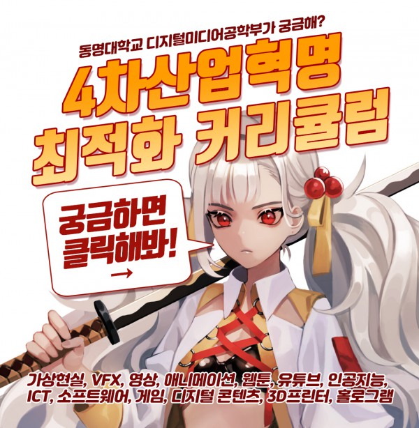 안녕하세요! 동명대학교입니다. 오늘 소개해드릴 학과는 게임공학과입니다. 게임 산업은 2018년 기준 18조원이 넘는 규모의 거대한 산업입니다. 미술, 영상, 음악, 프로그래밍 등 여러 분야를 필요로 하는 게임은 종합 예술로써 여러 분야의 조화가 중요합니다. "동명대학교 게임공학과"는 메타버스 관련 기술을 배우고 게임을 만드는데 핵심적인 역할을 담당할 기술들을 배우며 실무 중심의 학습으로 인해 전문 지식과 개발 능력을 지닌 게임 개발 전문가를 양성 하는 학과입니다! 게임 기획 전문가가 되기 위한 게임 기획 수업! 게임 프로그래밍 전문가가 되기 위한 UNREAL, UNITY 엔진을 배우는 수업 게임 그래픽 전문가가 되기 위.......