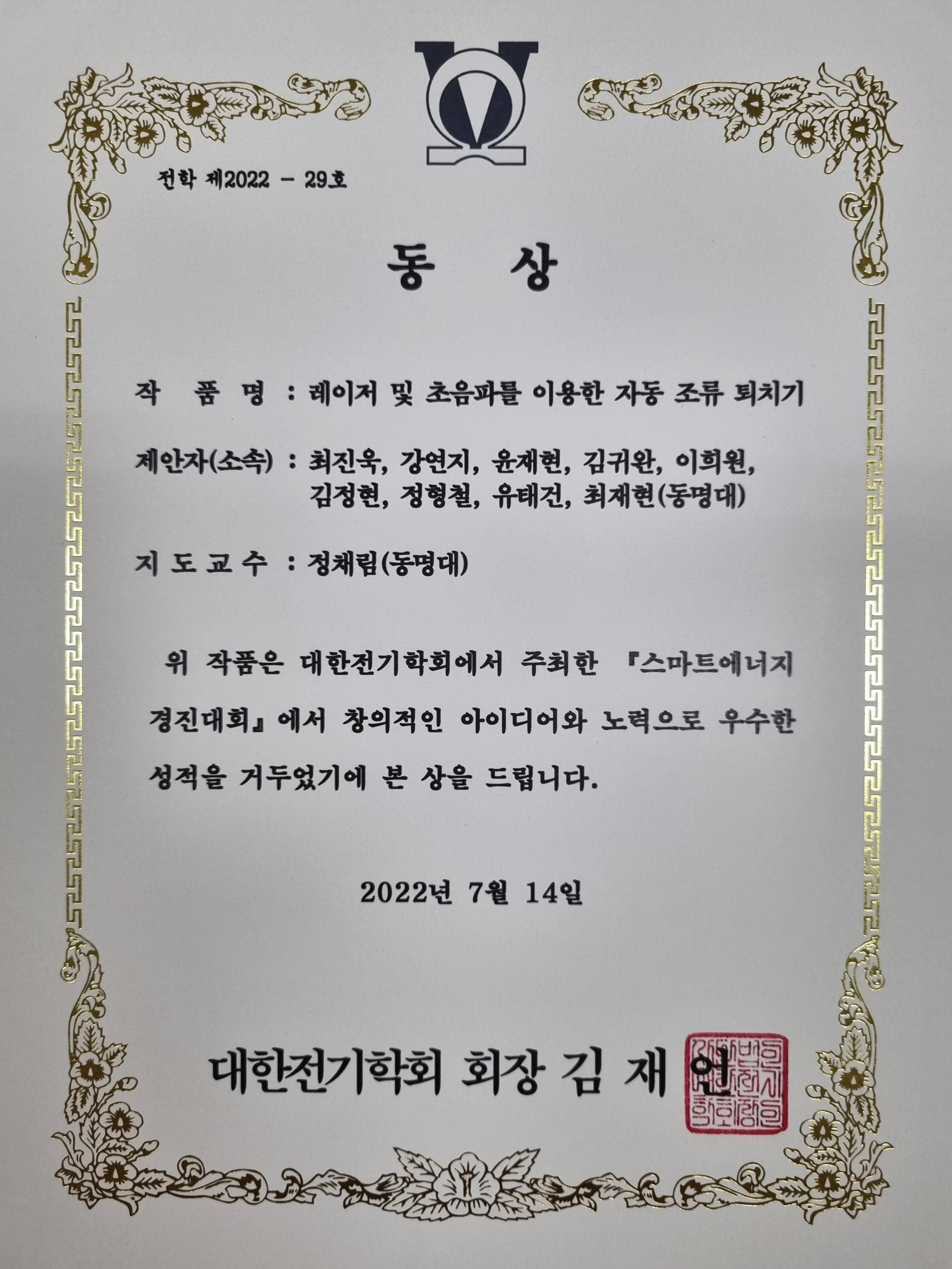 대한전기학회 53회 하계학술대회 스마트에너지경진대회 수상