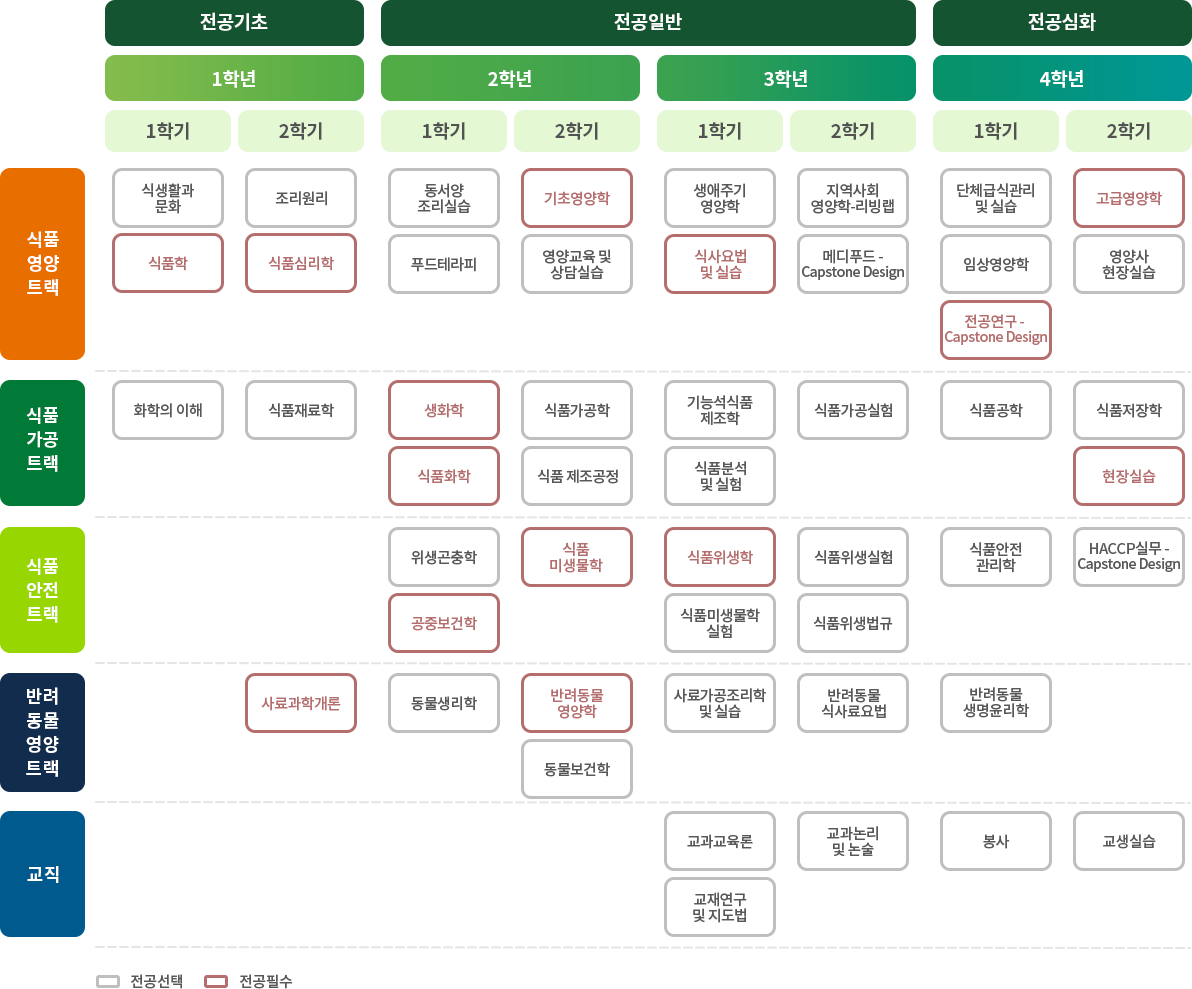 영양식품학과 이수체계도