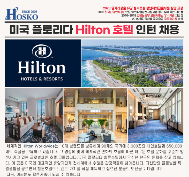 HOSKO 미국 힐튼호텔 인턴채용