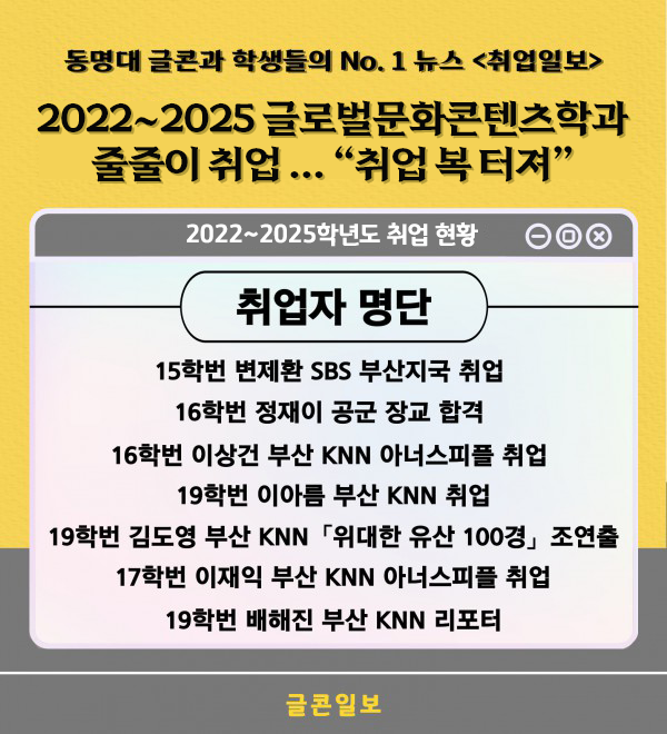 글로벌문화콘텐츠학과의 새로운 소식을 전합니다.