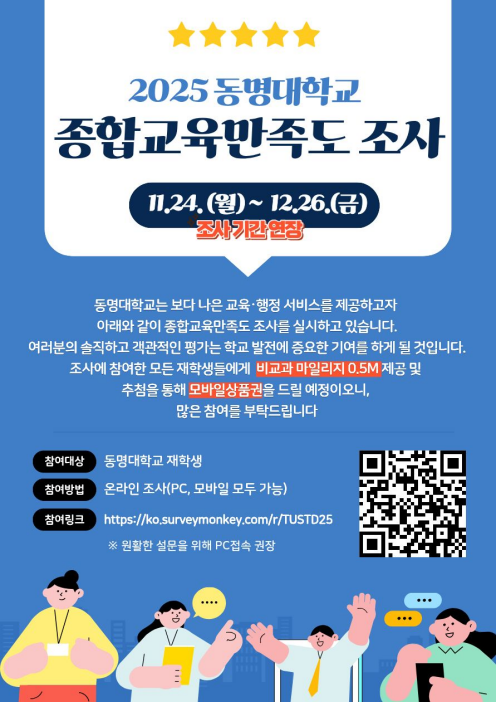 2025학년도 대학종합교육만족도 조사 참여 안내입니다.