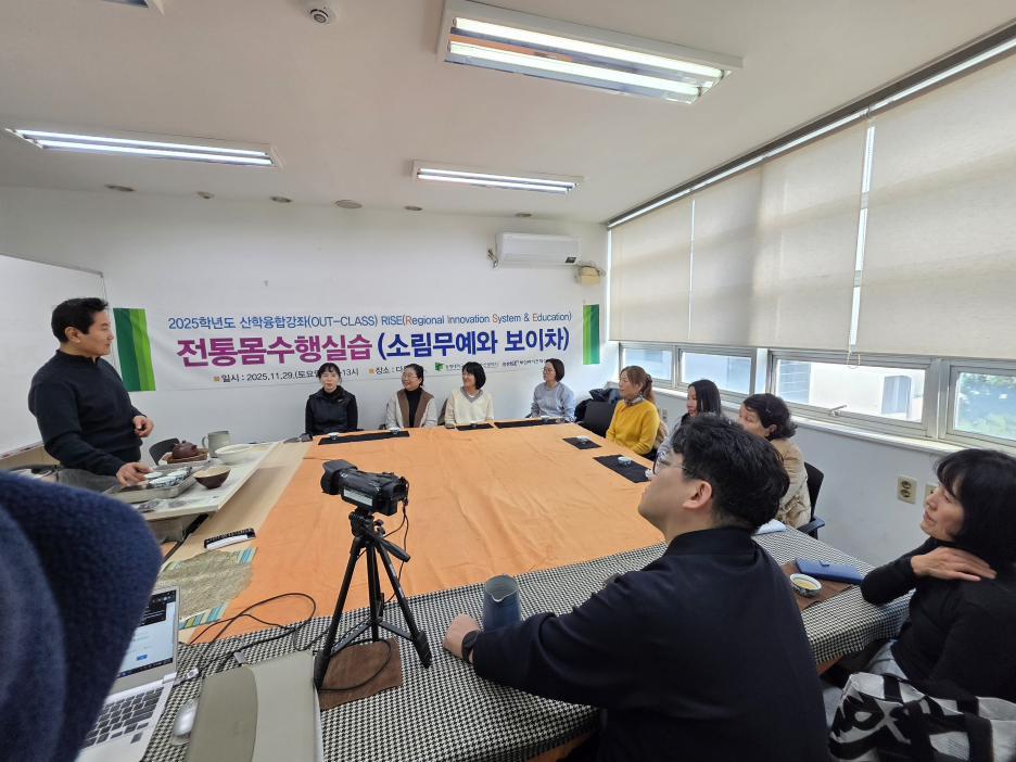 2025.11.22 RISE 프로그램 산학융합강좌(소림무예와 보이차) 활동 사진입니다.