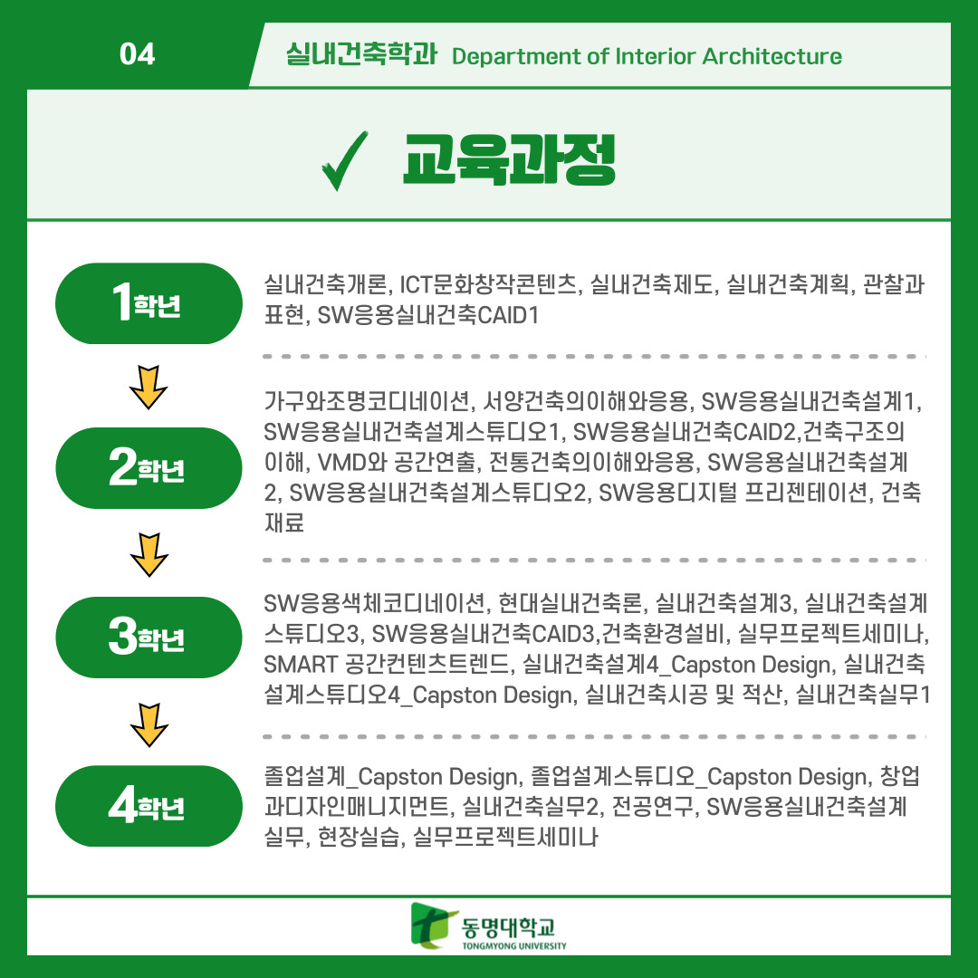 | 2006. 03 | 동명대학교 건축대학 실내건축학과 대학명변경 |