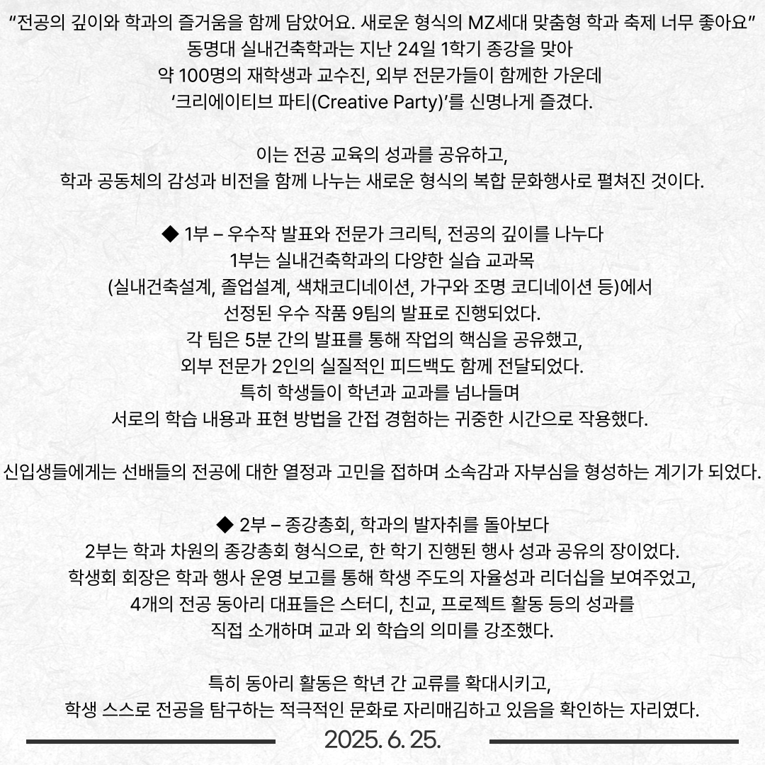 실내건축학과 크리에이티브 파티!!!