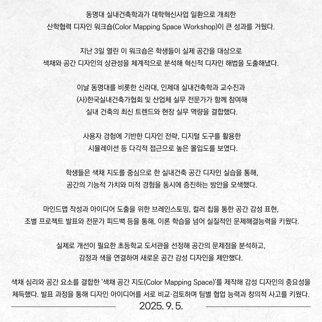 동명대학교 실내건축학과 대학혁신사업의 일환으로 성공적인 산학협력 워크숍 성료!!!