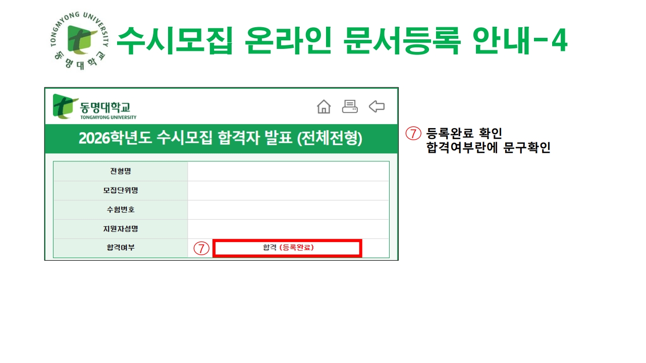 2026학년도 수시 지원자 최초합격자 등록 안내