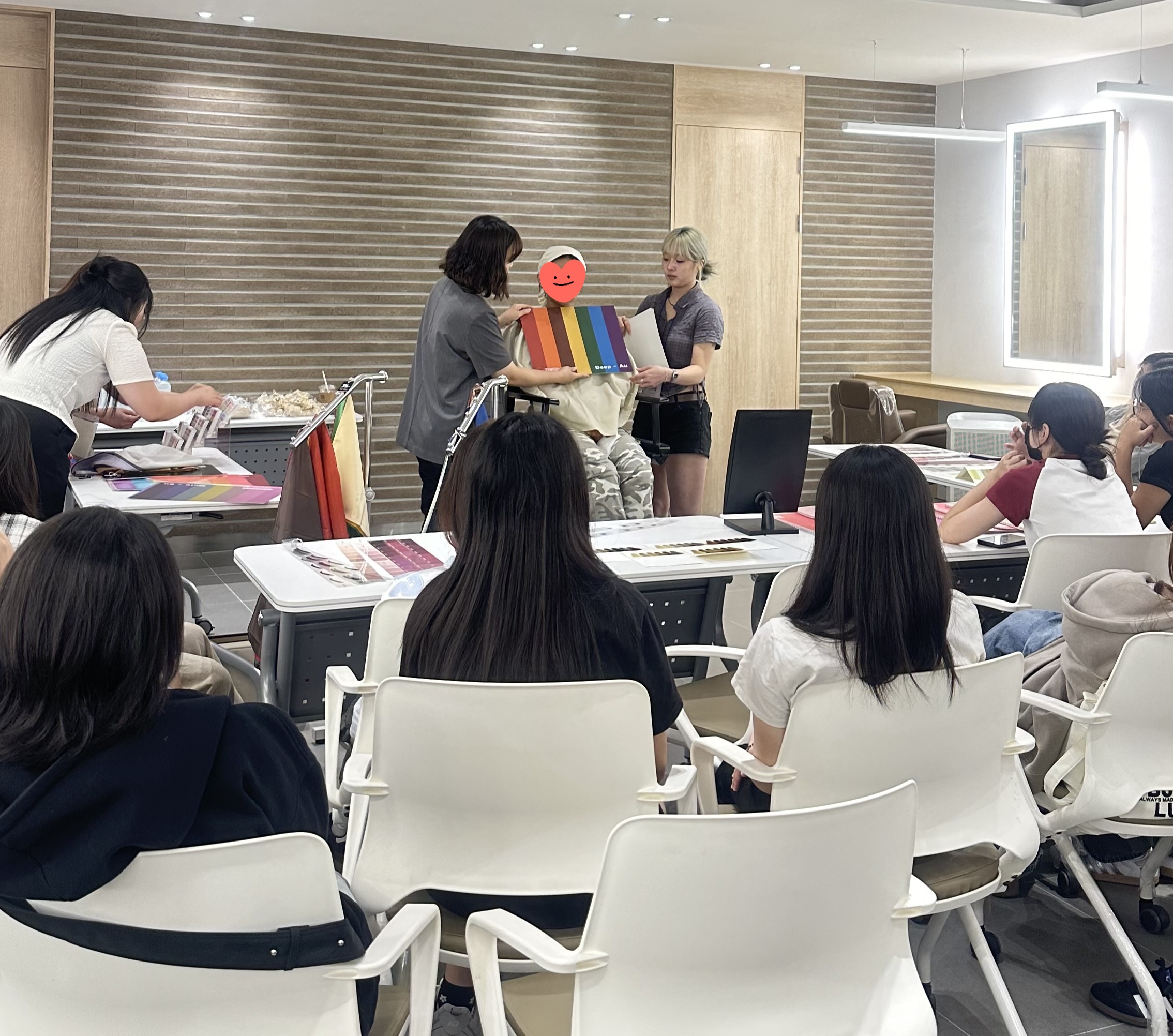 ▲퍼스널 컬러 이론 수업에서 참가 학생들이 집중하며 강의를 듣고 있는 모습