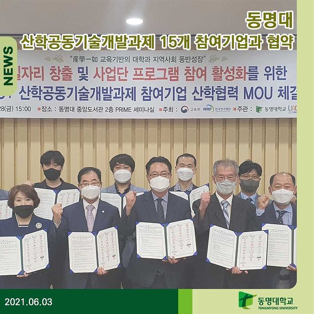 동명대, 산학공동기술개발과제 15개 참여기업과 협약