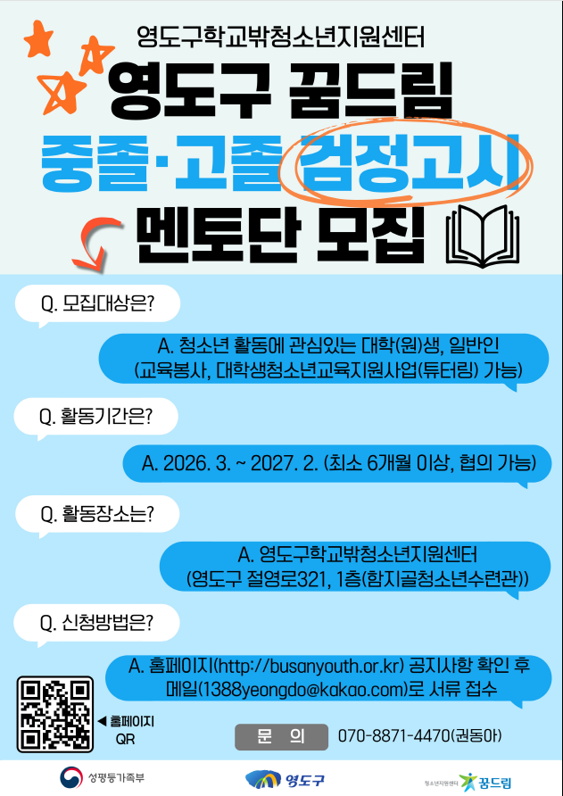영도구 꿈드림 중졸.고졸 검정고시 멘토단 모집 안내