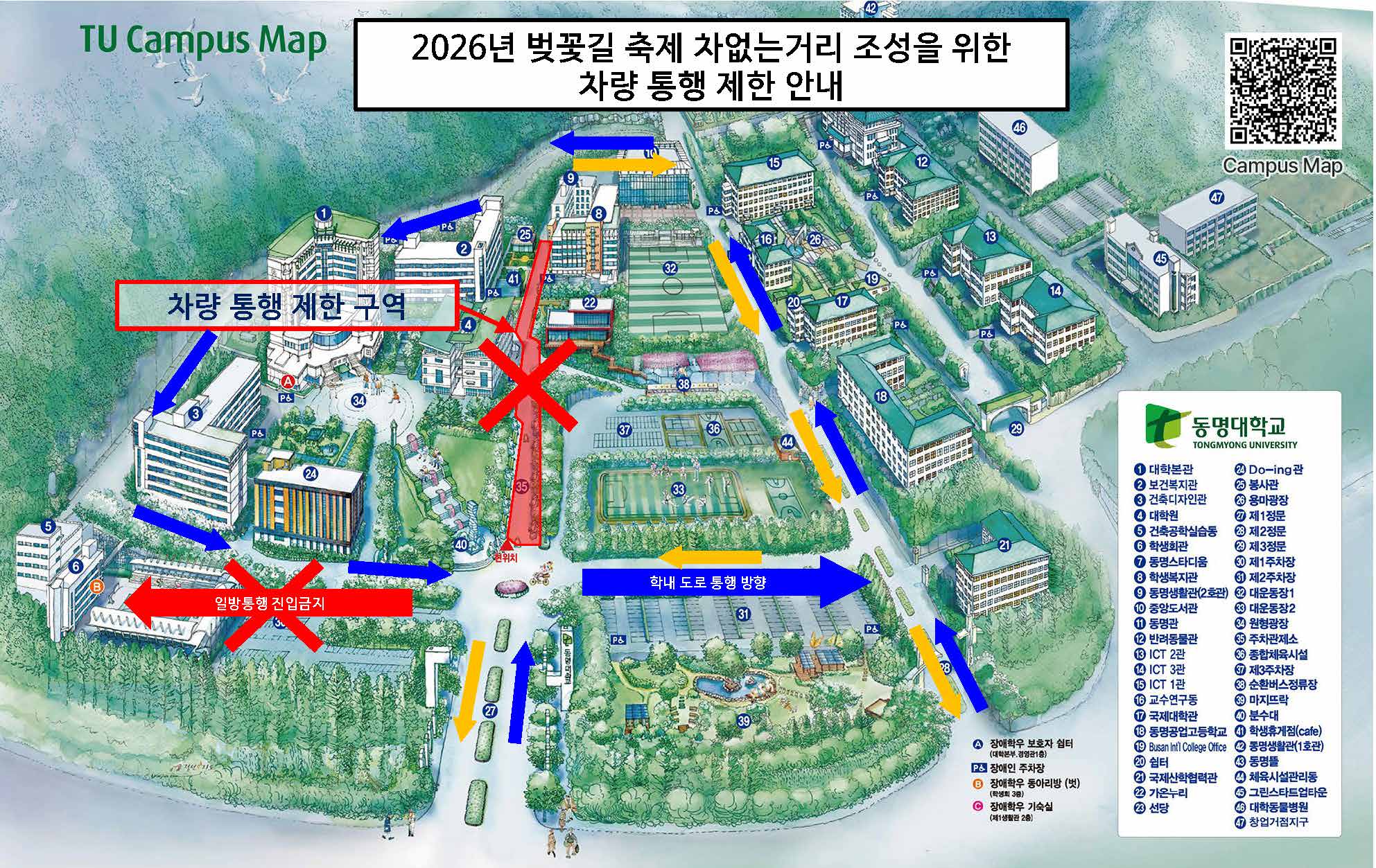 2026년 총학생회 「차 없는 거리: 봄이 좋냐?」 행사를 위한 학내 차량 통행 제한 안내