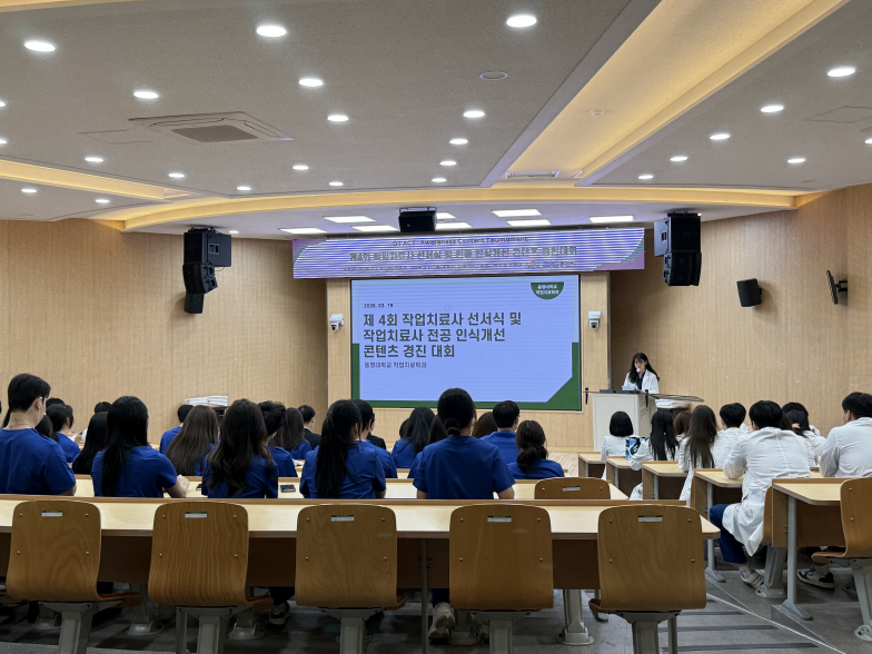 저희 작업치료학과에서는 3월 26일 목요일, 2026학년도 작업치료학과 제4회 작업치료사 선서식 및 전공인식 개선 경진대회를 진행하였습니다! 😊