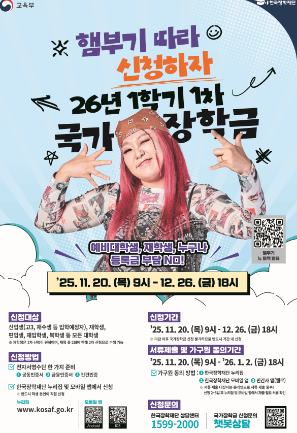 2026-1학기 국가장학금 1차 신청 안내 (~12/26(금) 18:00까지)