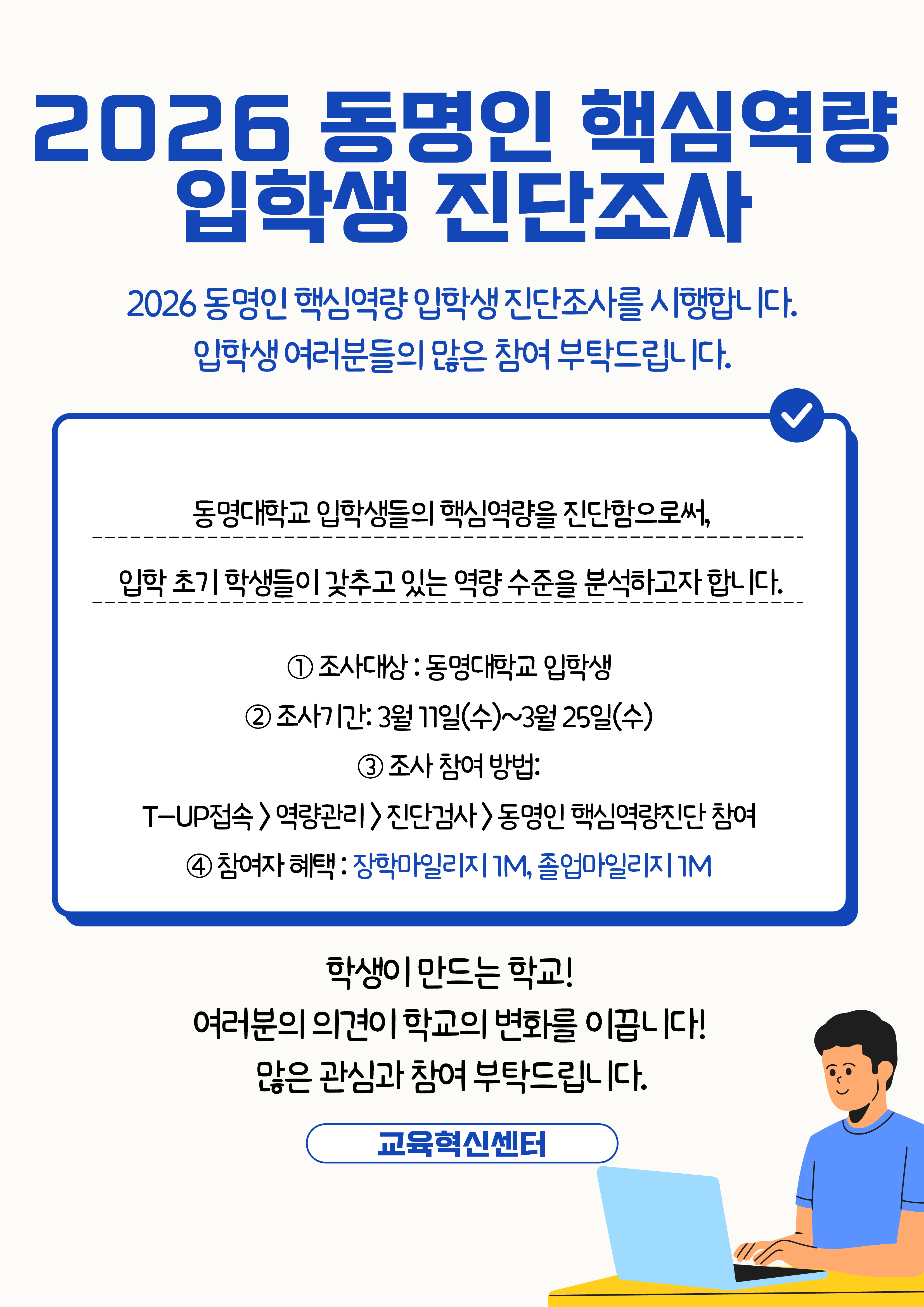 2026학년도 입학생 동명인 핵심역량 진단 조사 참여 요청