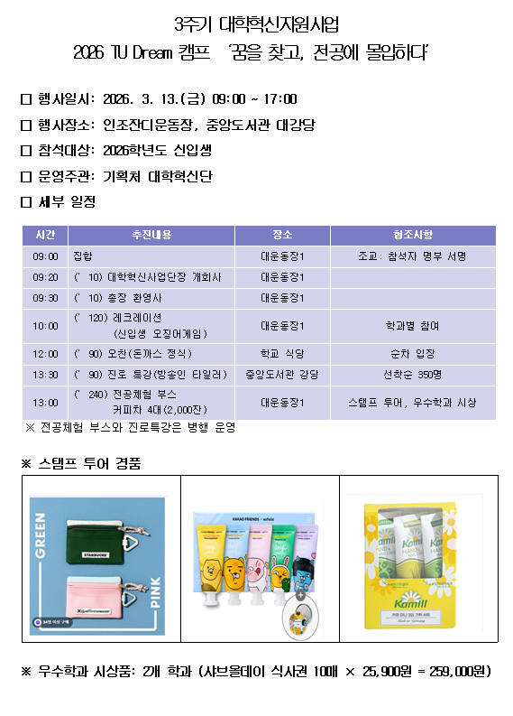 2026 TU Dream 캠프 "꿈을 찾고, 전공에 몰입하다"