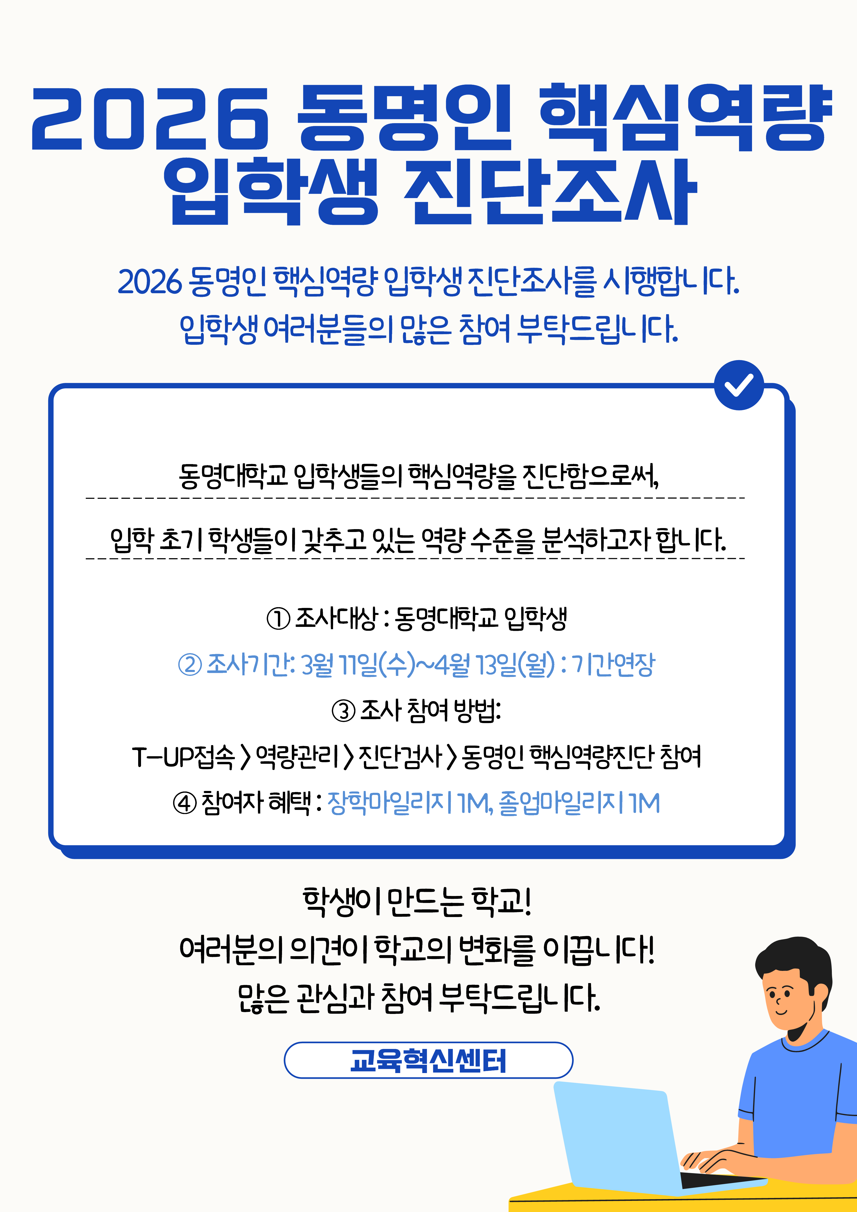 [교육혁신센터] 2026학년도 동명인 핵심역량 입학생 조사(~4/13)
