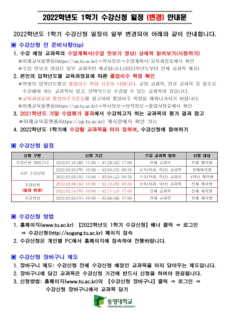 2022학년도 1학기 재학생 등록금 수납 일정 안내
