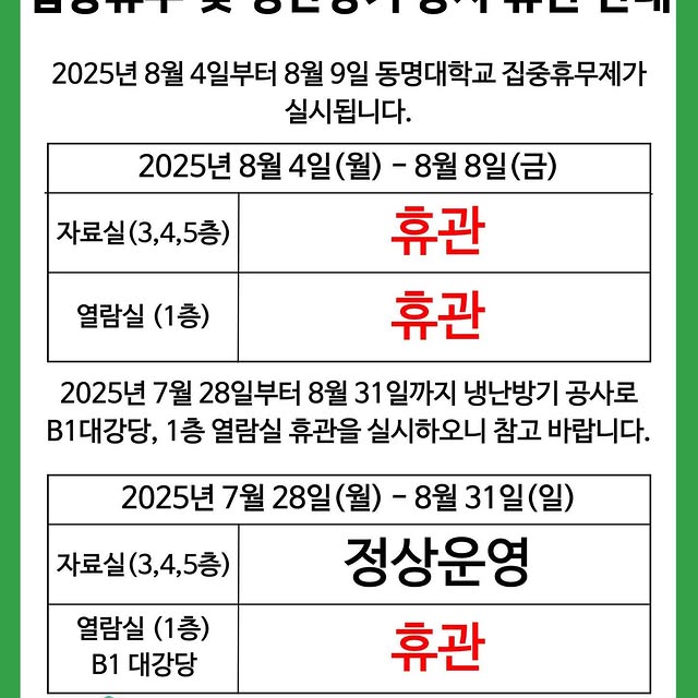• 📚 중앙도서관 집중휴무 및 냉난방기 공사 휴관 안내 📚 인스타그램 2025-07-17