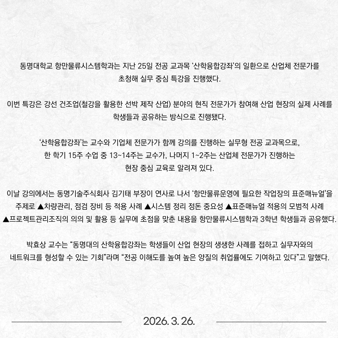 동명대 항만물류시스템학과 산학융합강좌 눈길